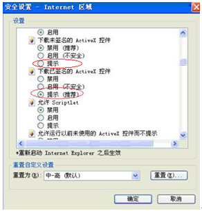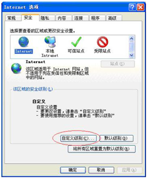②如果無(wú)法下載或仍顯示紅X,則于瀏覽器——工具——internet選項(xiàng)——安全——自定義級(jí)別,如下圖: