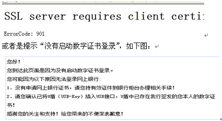 在網(wǎng)銀登錄界面點(diǎn)擊登錄,顯示客戶(hù)端證書(shū)無(wú)效或者數(shù)字簽名錯(cuò)誤。